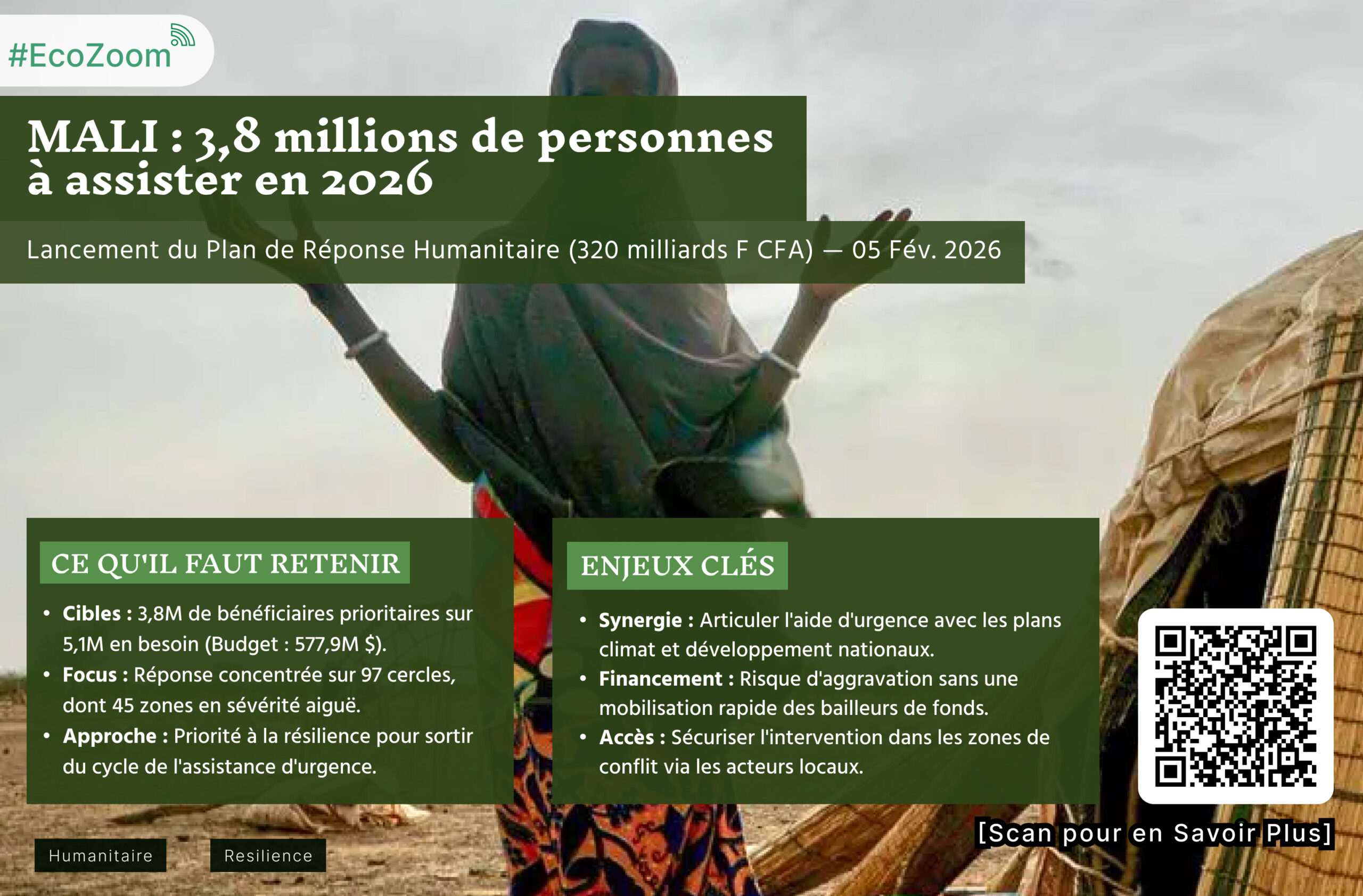 Ce plan humanitaire révèle l’ampleur des fragilités structurelles du Mali, où les crises sécuritaire, climatique et économique se renforcent mutuellement. Les zones rurales dépendantes de l’agriculture pluviale, déjà exposées aux sécheresses, aux inondations et à la dégradation des terres, voient leurs moyens de subsistance menacés, ce qui alimente les déplacements forcés et les tensions sociales. En ciblant les besoins vitaux tout en intégrant des actions de relèvement et de résilience (soutien aux moyens de subsistance, restauration des services de base, réduction des risques climatiques), le PRH 2026 peut contribuer à stabiliser certaines zones et à limiter la spirale crise humanitaire–crise sécuritaire. Pour autant, sans amélioration du niveau de financement, une partie des besoins restera non couverte, avec un risque d’aggravation des vulnérabilités, notamment pour les enfants, les femmes et les personnes déplacées.